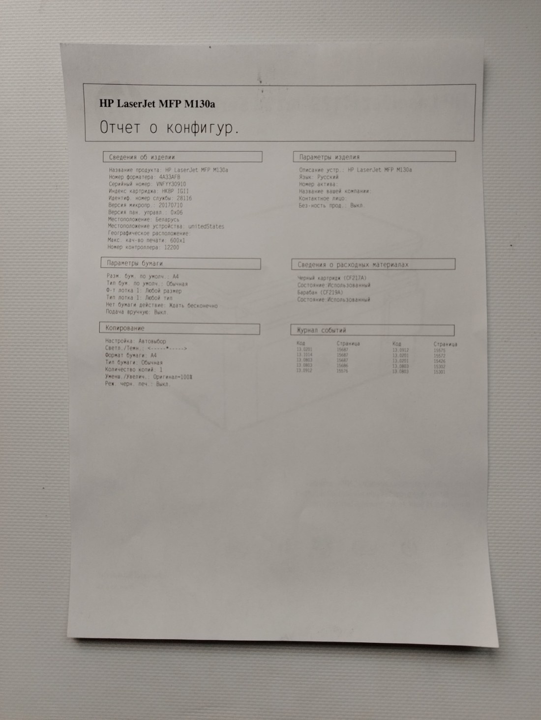 - Модель: MFP M130a [G3Q57A]